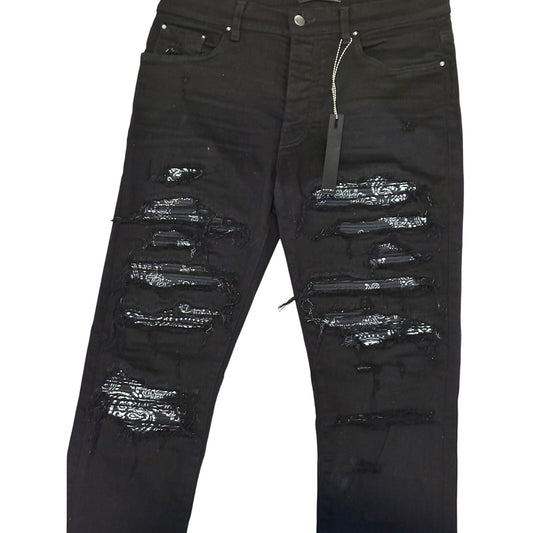 AMIRI Black Bandana Patch Thrasher Skinny Jeans 32
